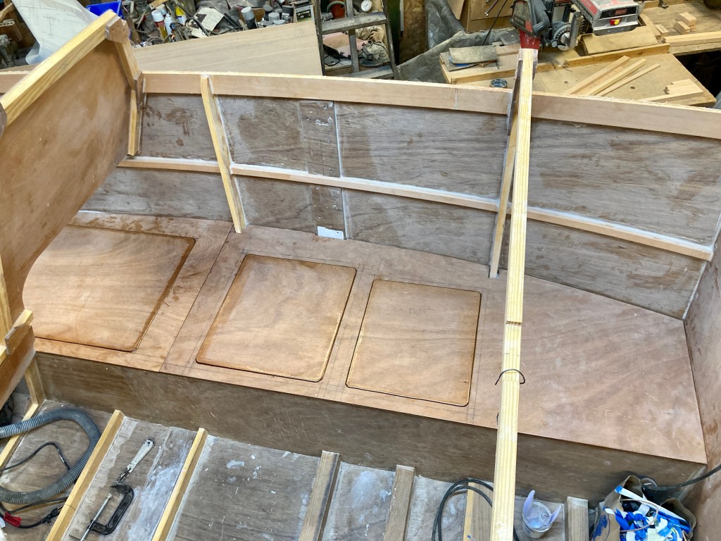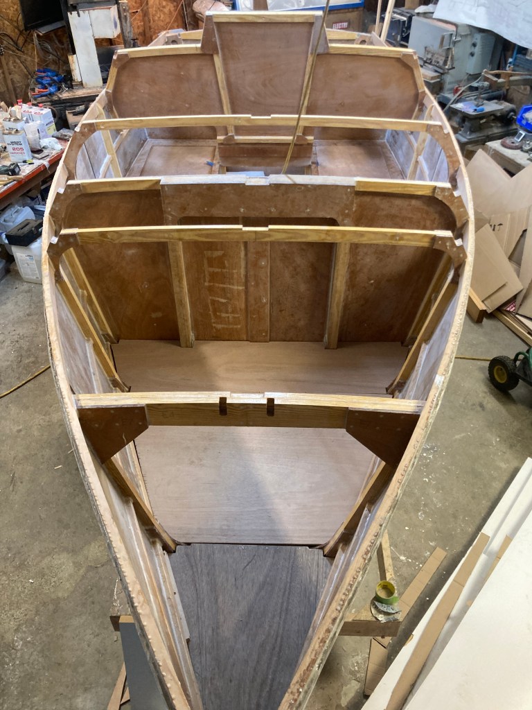 Now with the berths installed in both the cabin and the forepeak area it was time to begin fitting the deck beams and panels and closing up the boat! Thanks for reading!