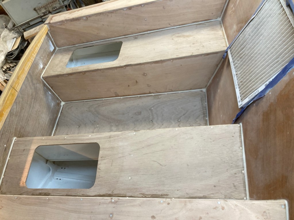 To finish it off I went around and added nice thick fillets of epoxy to all of the joints. This helps increase the strength of the seams but also provides a nice radius for the fiberglass tape and cloth to come later. Now on to the interior, thanks for reading!