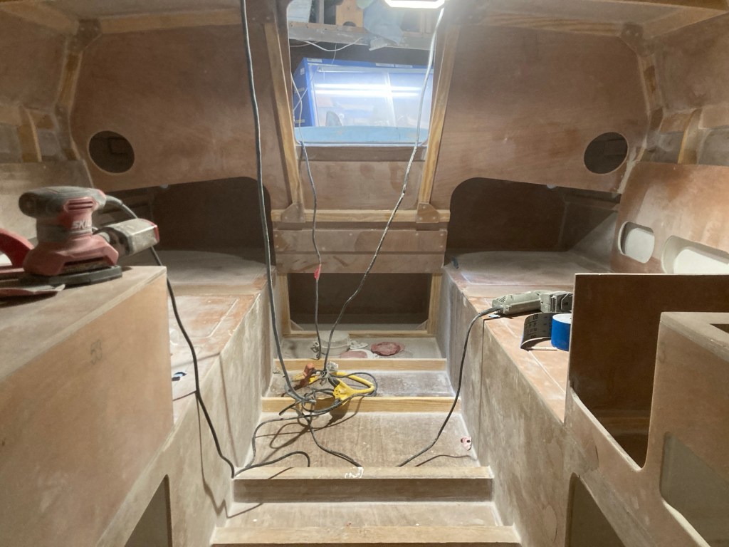 In order to paint the interior I had to do several days of sanding to get all of the fillets smoothed out and grind off any excess epoxy from the assembly process. This was tedious work as by now I had quite had my fill of sanding, but there was more to come.
