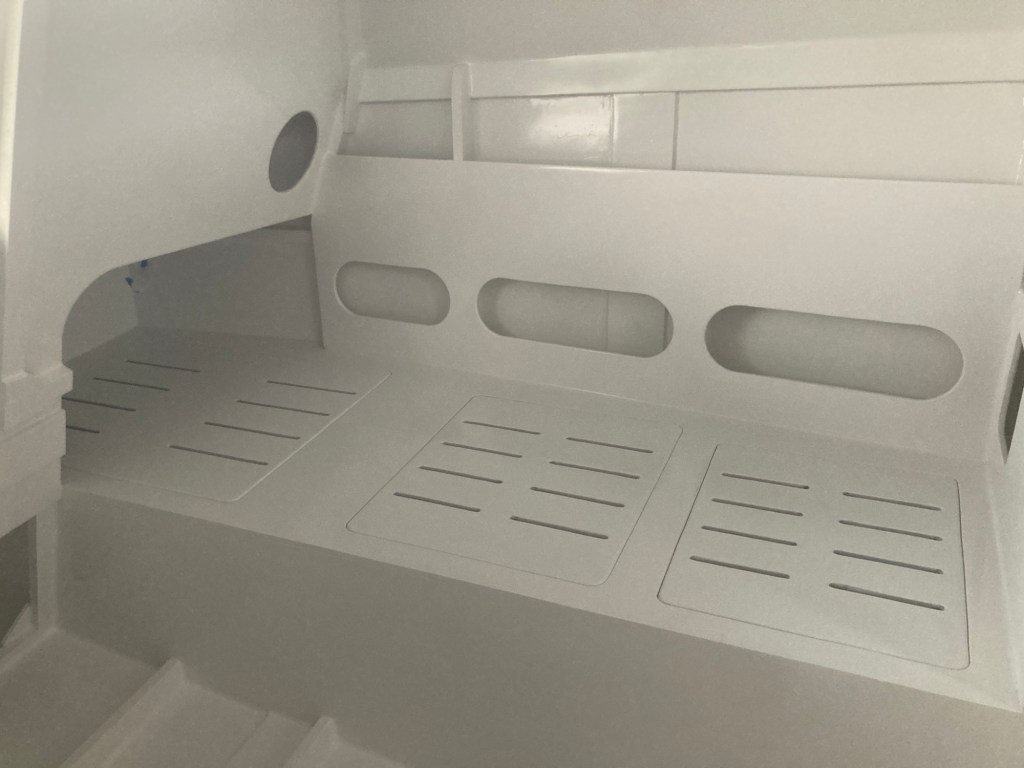 To prep the interior for paint I sanded everything inside with 80 grit. Then I sprayed in two coats of Alexseal 302 high build primer. I sanded that with 180 grit and then sprayed in two coats of the Alexseal 442 finish primer. Sanded that with 320 grit and sprayed in two coats of Alexseal 501 Snow White topcoat. Sanded that with 400 grit and then sprayed in the final layer of 501 topcoat.
